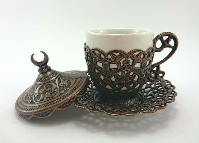 Золоте правило кавового етикету свідчить: чим міцніше напій, тим менше по - обсягом посуд. Ідеальним вибором для кави по-східному є чашка Демитассе. Завдяки солідній товщині стінок, вона довго не дає напою охолонути і глибше розкриває смак. Цьому повною мірою відповідають чашки для кави по-турецьки.