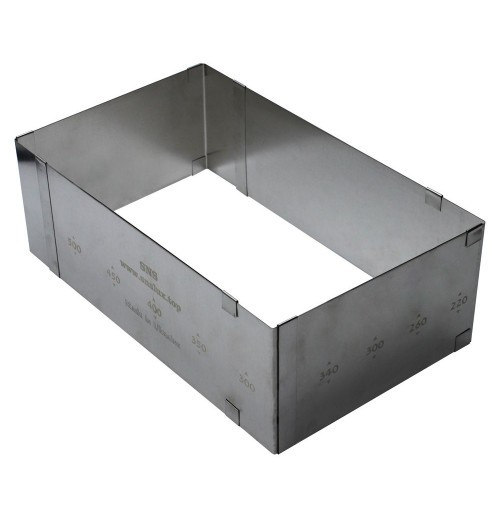 Металева розсувна форма дозволяє випікати бісквіти, коржі і суфле різного розміру прямокутної або квадратної форми.