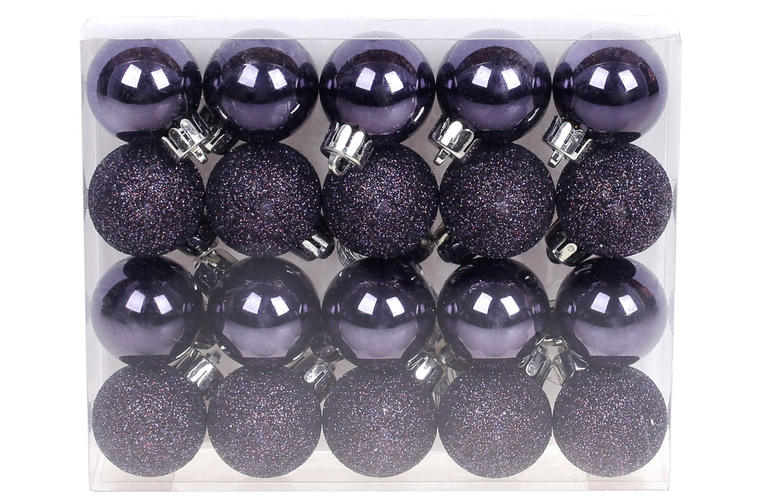 Набір ялинкових шарів 3см, колір - ожина, 20шт: перламутр, гліттер - по 10шт