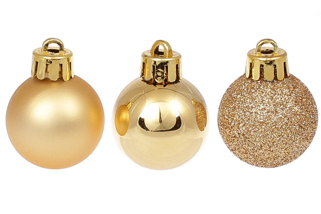 Набір ялинкових шарів 3см, колір - золото, 25шт: 5шт - матовий, 10шт - глянець, 10шт - гліттер