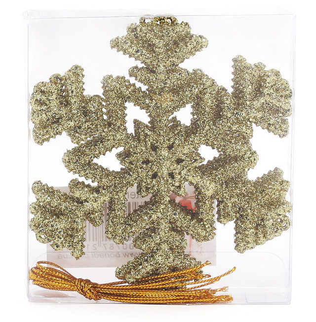 Набір (4 шт) декоративних сніжинок 10 см, колір - золото, 12 наборів