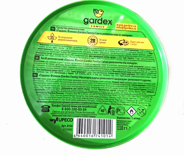 - Склад- цітронелловое олію - 3%, парафіновий віск.